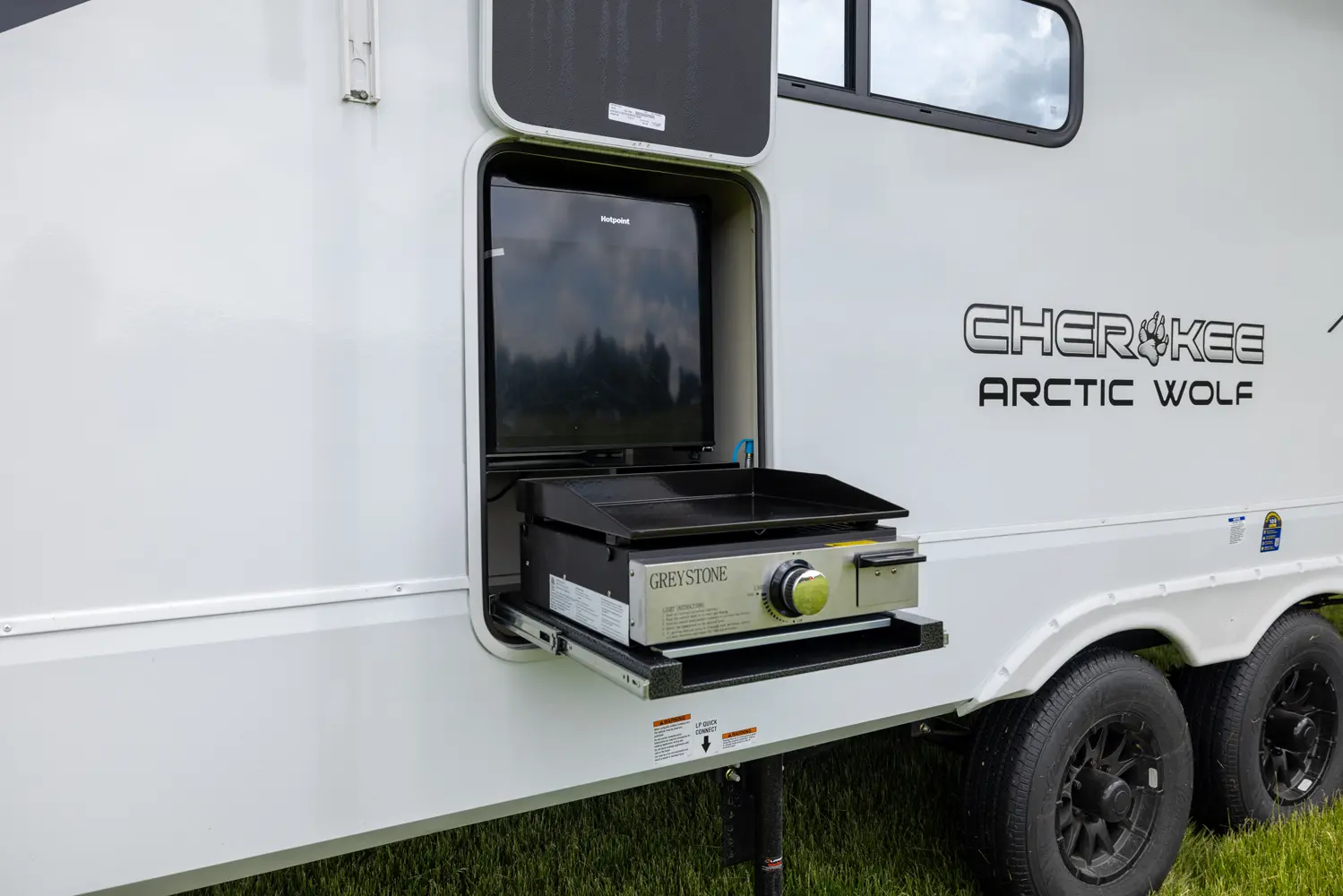 Our most popular multi-sleeper and family fun coach! Interior highlights include an oversized u-dinette seating surface for all the kids, dual pots and pans drawers, oversized double bunk beds, farm-style sink and 6’4” tall slide rooms, electric fireplace and an 80” queen size bed. Some exterior refinements include an oversized 20’ exterior awning, 15,000 BTU A/C, basement storage, Cherokee “Step Above” entry step, one-touch auto leveling and a deluxe outside kitchen for the camp chef!