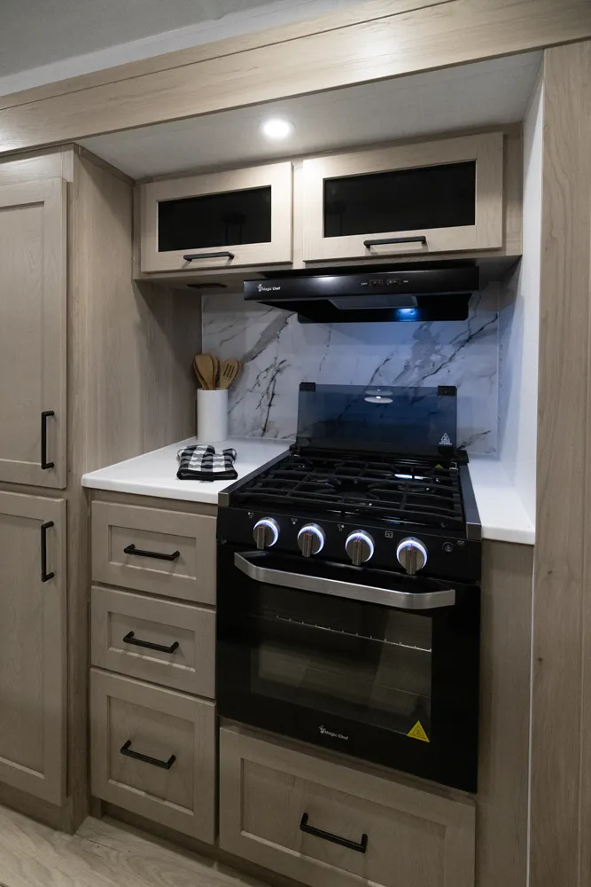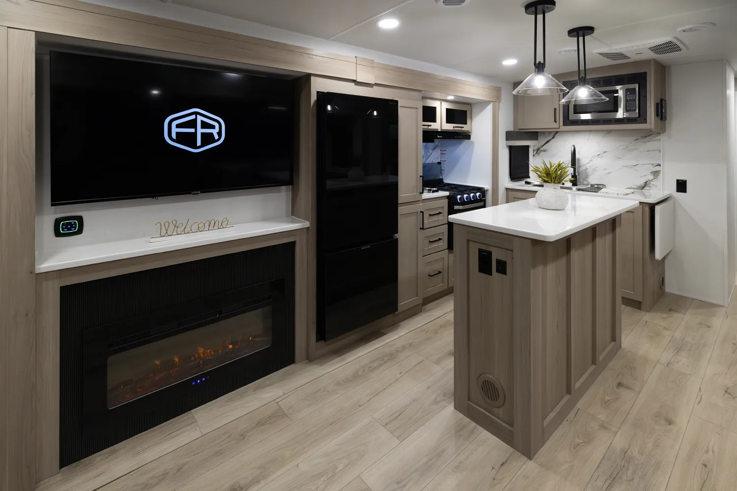 The Flagstaff 29RLKS Super Lite delivers a standout layout with a front bedroom featuring a true queen bed and abundant comfort. The large bathroom boasts a rectangular shower and linen storage for convenience on every trip. The massive living area shines with a TV, fireplace, 78" hide a bed, 68" theater seating, and a 44" dinette, creating a perfect space for relaxing and entertaining. The kitchen island adds extra prep space and storage, rounding out this Super Lite’s thoughtful design.