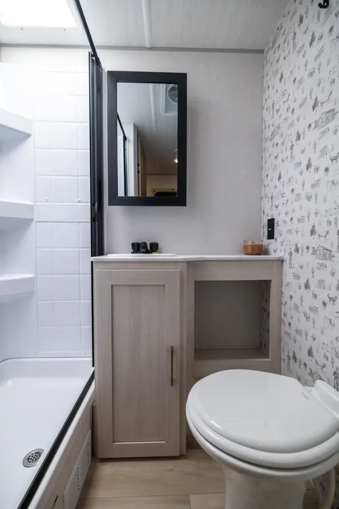 Compact yet full-featured, this travel trailer offers a private queen bed with overhead storage, a spacious kitchen with large fridge and air fryer microwave, full bath with high-powered fan, and walk-in pantry. Built for four-season camping with heated enclosed underbelly, radiant foil insulation, and 12V tank pads. A 16' power awning expands your outdoor living space.