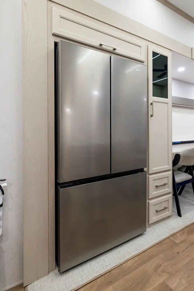 • Stainless Steel Residential Style Appliance Package w/18 Cu Ft 12V Refer and Large Range