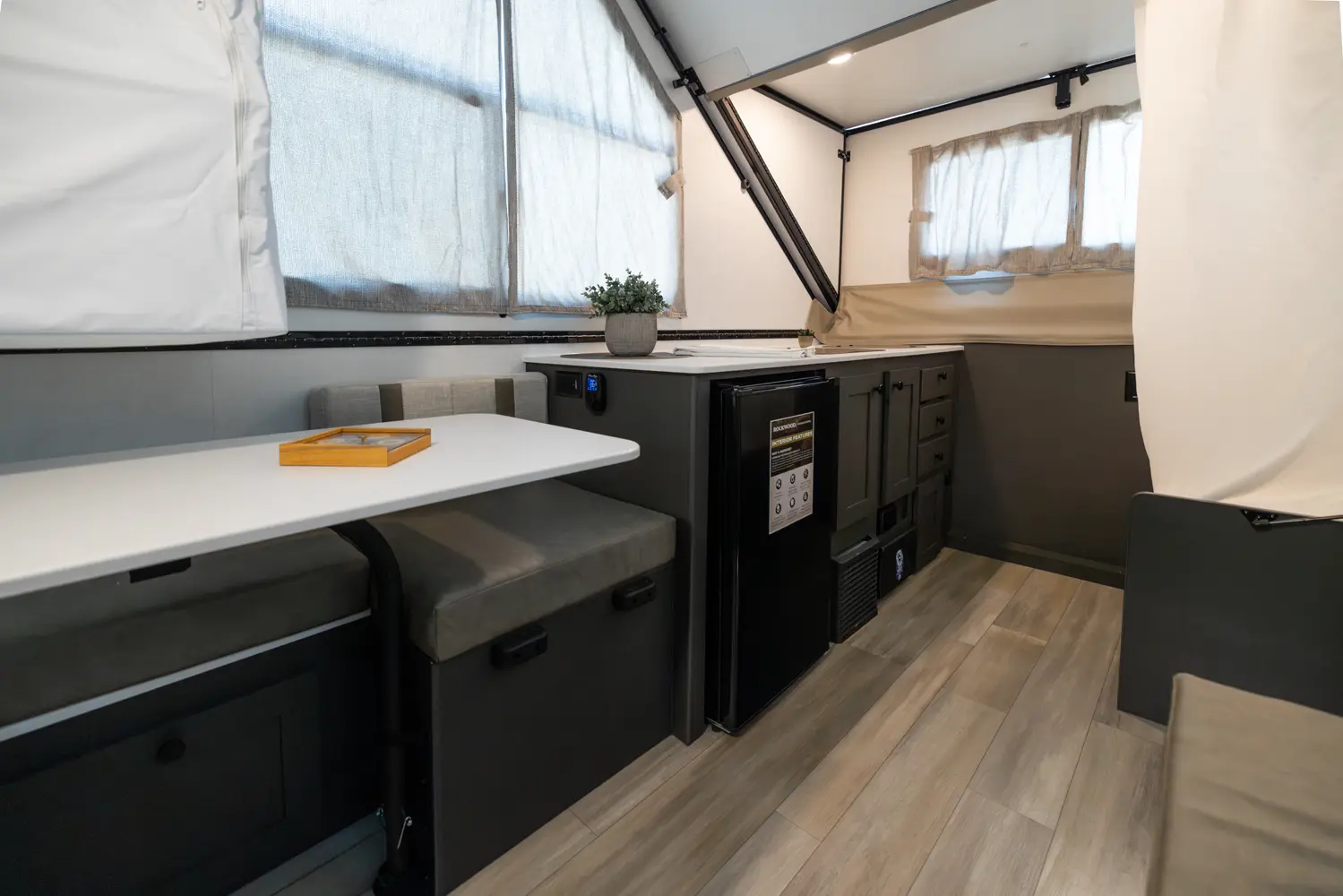 The Rockwood A123RG is a compact A-frame that offers practical comfort for your travels. Inside, you'll find a rear gaucho bed, a cooktop, a small refrigerator, and a wet bath—all designed for efficient use of space. Whether you're on a short trip or an extended adventure, this camper is ready to go with everything you need.