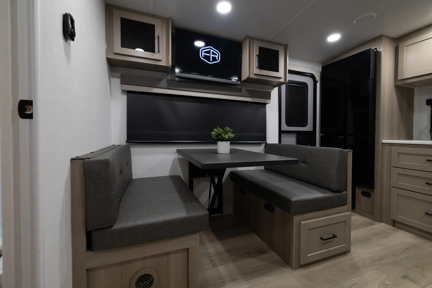 The 2515S offers a spacious convenient layout with two entry doors providing easy access to the kitchen, bedroom, and bathroom, all while the slides are retracted. The rear kitchen features ample counter space while the living area includes a U-shaped dinette and theater seating. (optional hide-a-bed) The wardrobe slide adds generous storage making this a perfect choice for families or couples seeking flexibility and functionality on the road.