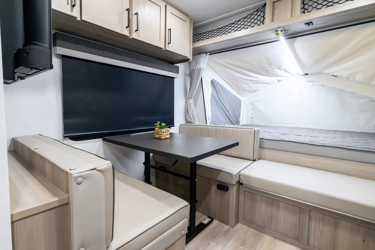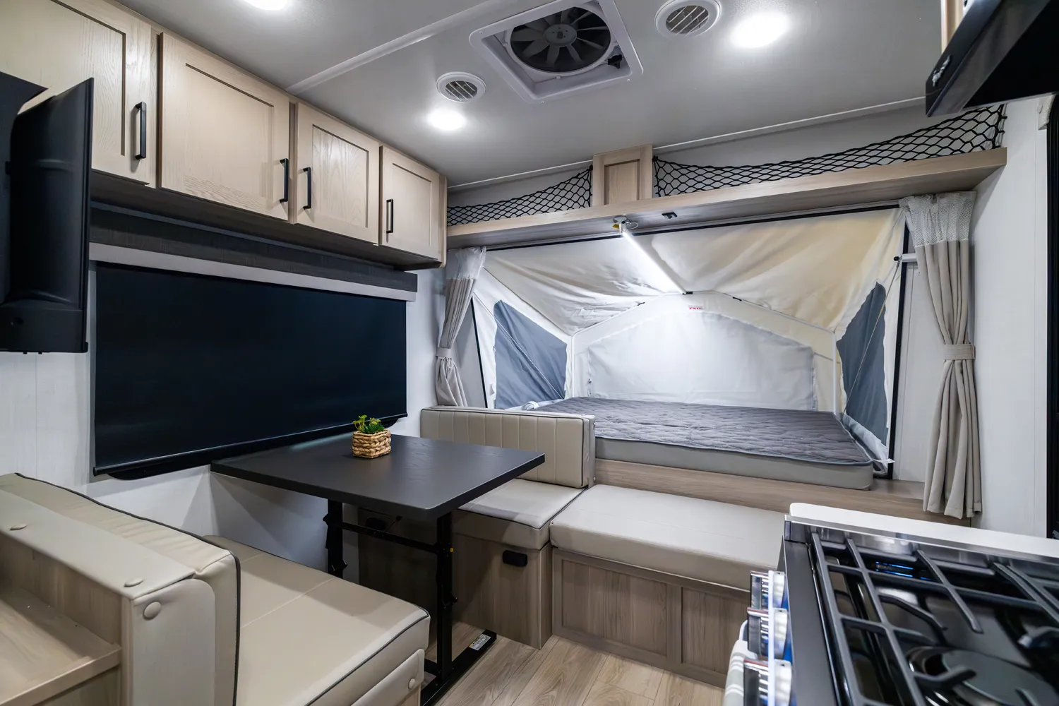 The 17E is Rockwood’s first and only single axle hybrid, making it both lighter and easier to tow than traditional hybrids without sacrificing features. Its smart design delivers comfortable sleeping, dining, and living spaces in a compact footprint. This floorplan is perfect for adventurers who want big camping experiences with minimal towing hassle.