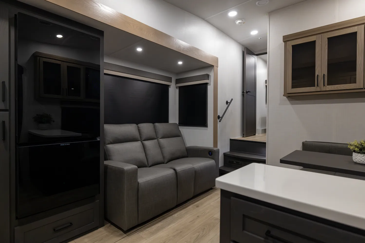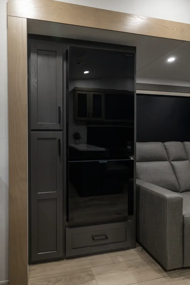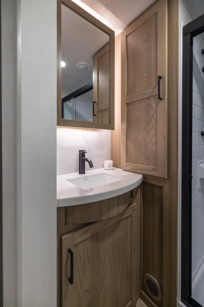 This under-30' fifth wheel packs luxury into a compact design! Enjoy a spacious living area with a 67" theater seat, 44" dinette, and entertainment center with TV. The kitchen offers a pantry, fridge, and plenty of counter space, while the private front bedroom includes a queen bed (king optional) and wardrobe storage. With a roomy bathroom, pass-thru storage, and a 20' awning, it’s the perfect blend of comfort and easy towing.