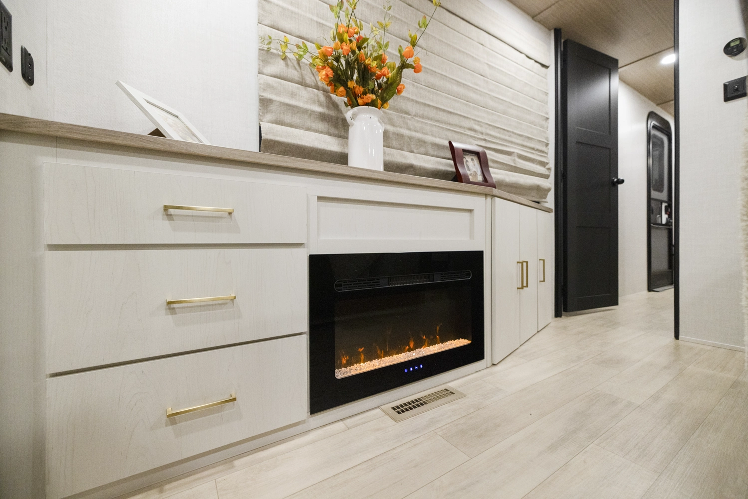 • True Flush Floor Slideouts with Fabric-Backed Shaw Linoleum