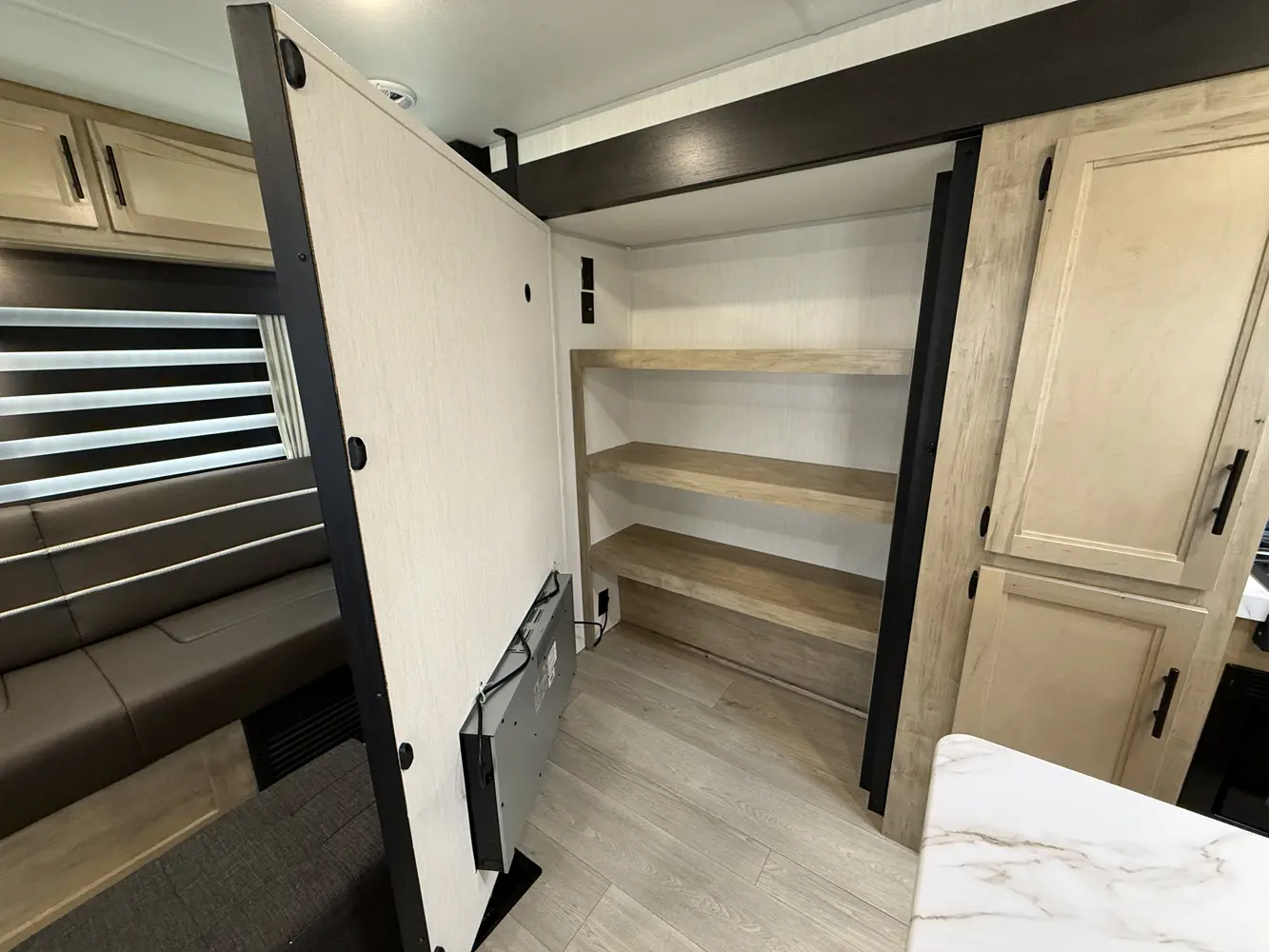 • Blackout Glass, Safety Slam, Friction Hinge Entry Door with Window and Shade Prep (N/A on LP models)