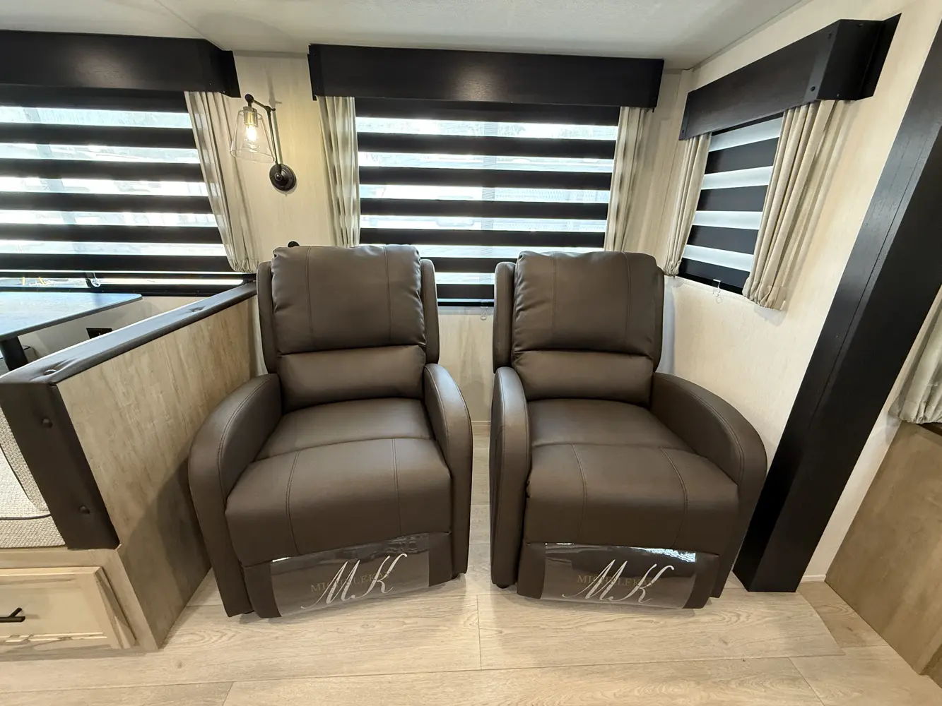 • Cherokee Black Label Wolf Den (Deep Tinted Frameless Automotive Glass Windows, High Gloss Gel Coat Exterior Sidewalls, Multicolor Reading Lights, Pillowtop Mattress Upgrade, Solid Surface Countertops, Thermo Foil Arctic Insulation)
