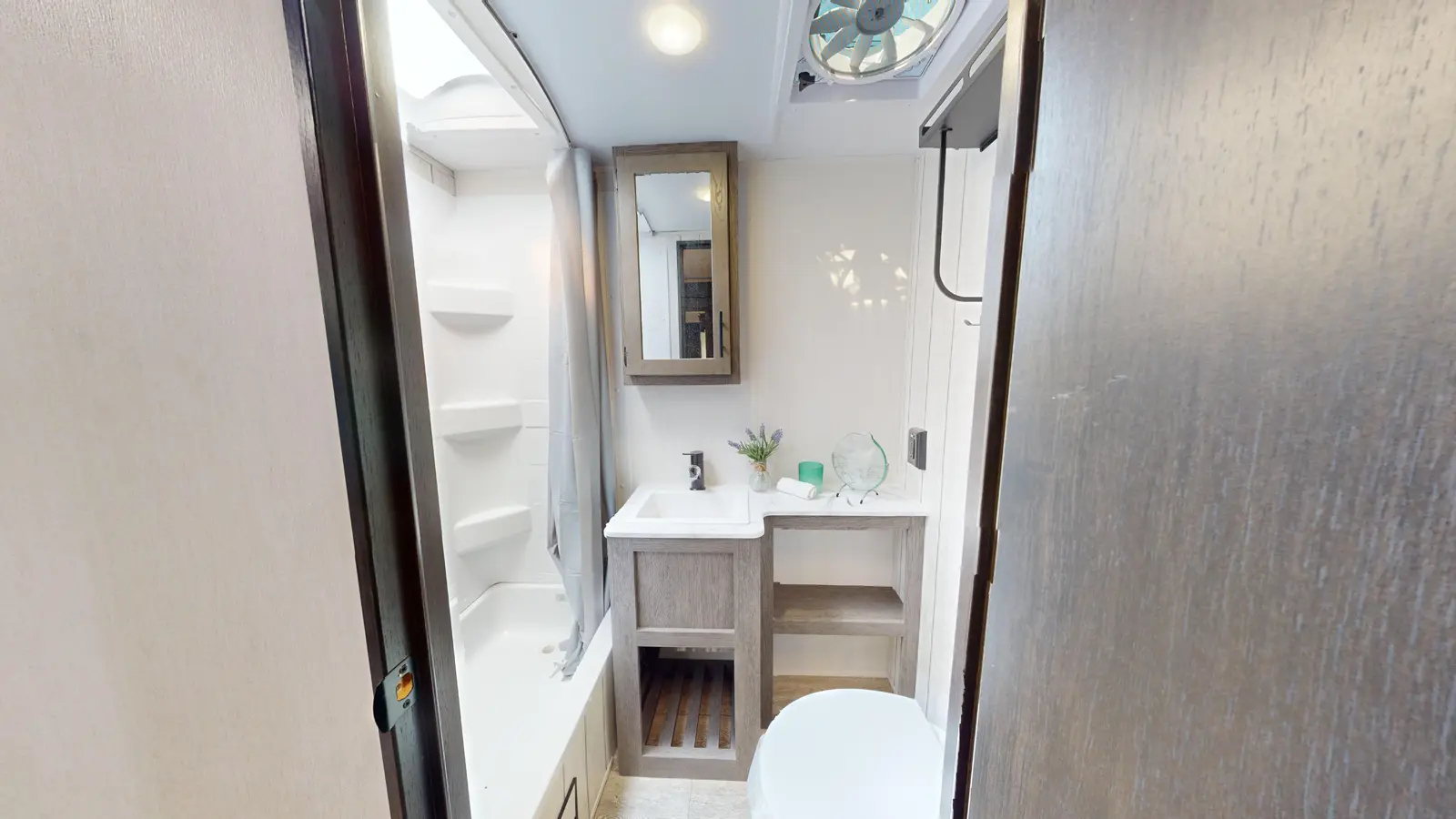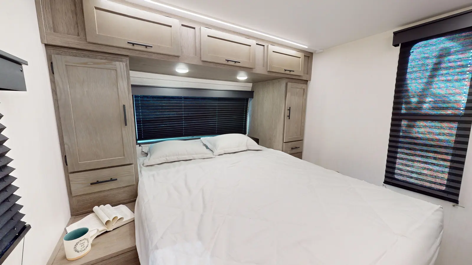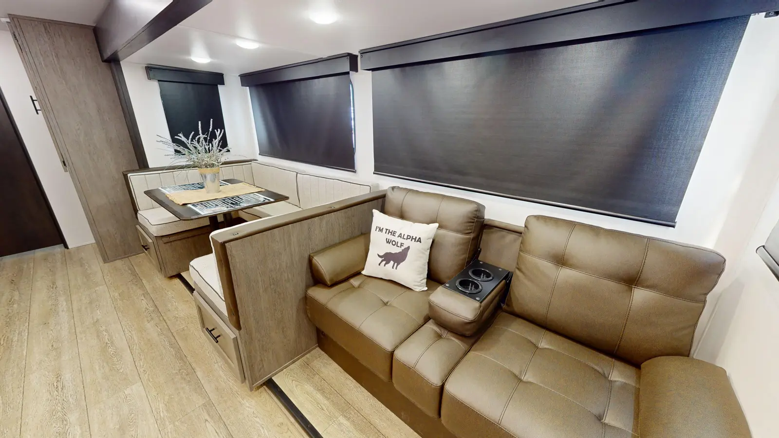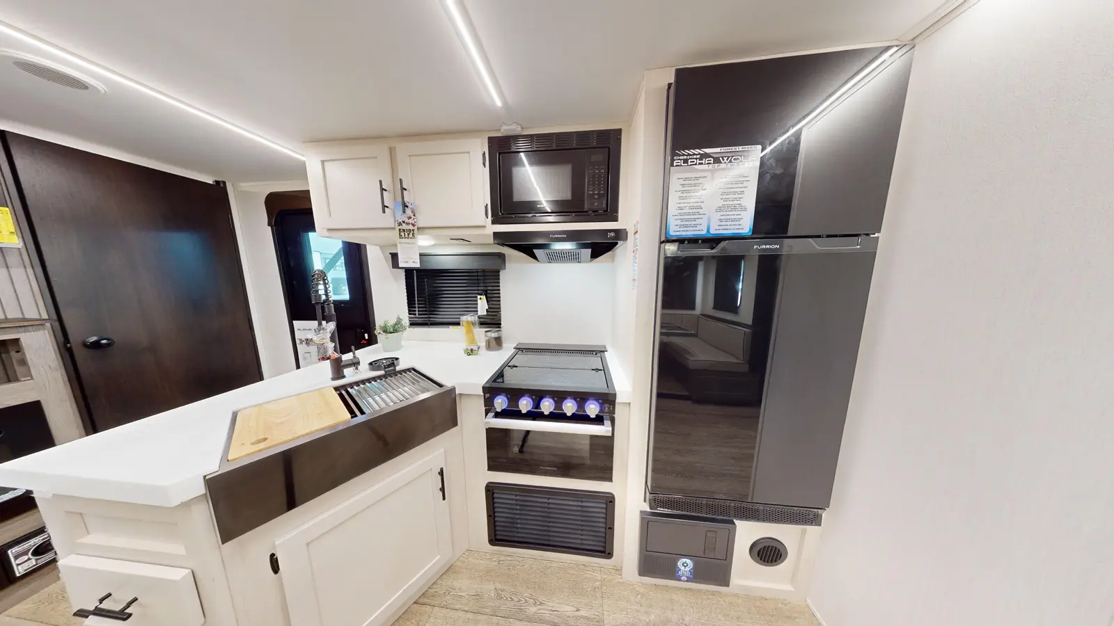 Available with either a bunk room or an extra bedroom with queen bed, the Alpha Wolf 280QBS by Forest River is a great option for families needing to maximize space in a form factor under 35 ft. A U-shaped dinette in the kitchen allows for plenty of seating and doubles as an extra bed when not in use. The living room features a cozy fireplace, TV hookups and a sofa also converts into extra sleeping. Relax up front with a queen size bed, laundry chute and plenty of wardrobe space.