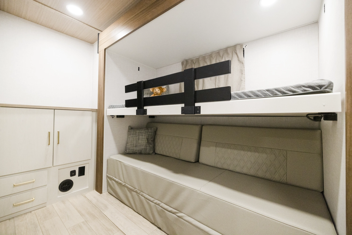 This is another floorplan unlike any other, the 3400SB has a brand-new mid-bunkroom, rear-kitchen, and spacious master-bedroom slide. This camper truly has something for everyone with limitless opportunities to the space at hand. The 3400SB is a great representation of how we stretch the limits here at Vibe.